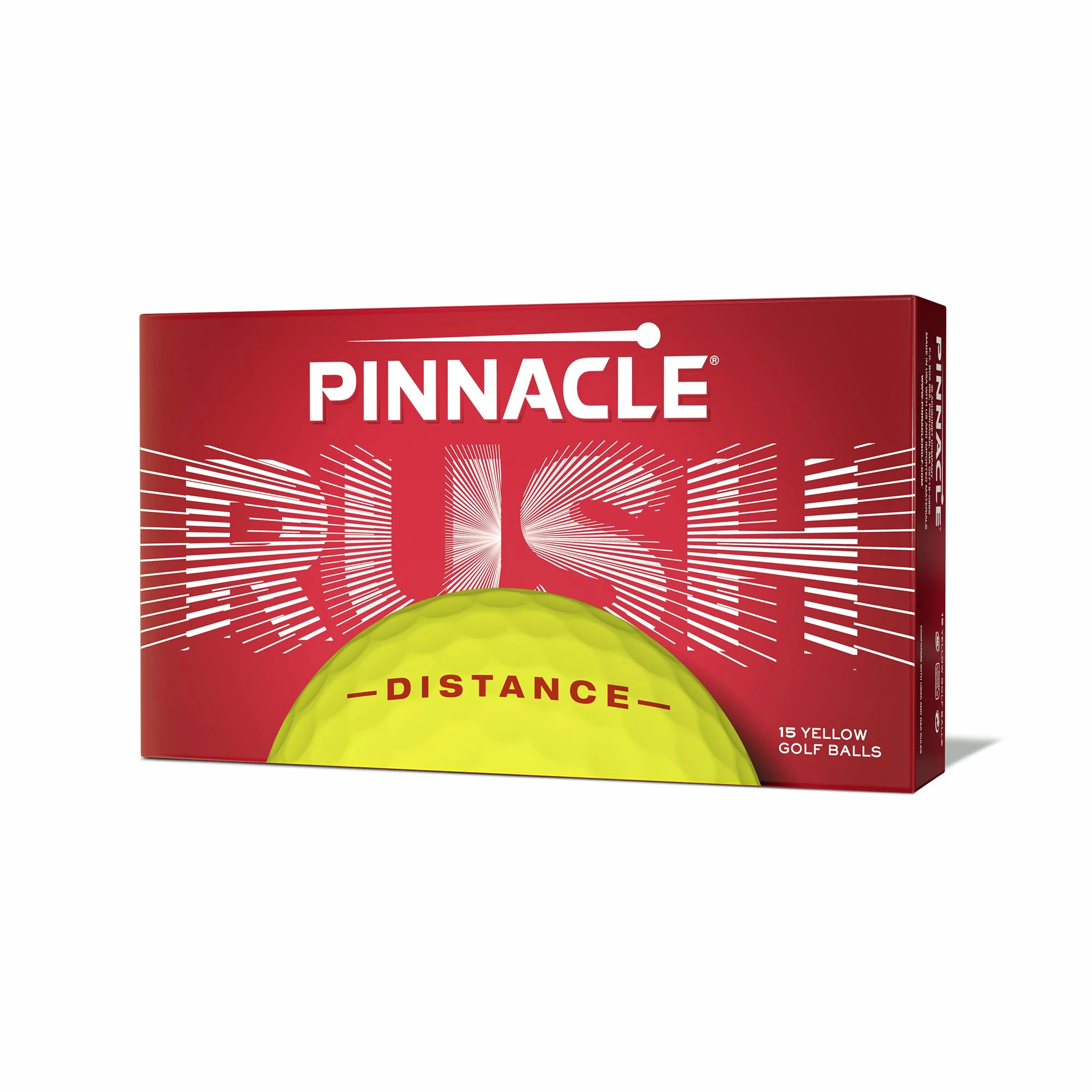 Pinnacle Rush Golf Ball – Yellow 15 Ball Pack. The Pinnacle Rush is designed to deliver extraordinary distance helping golfers of all abilities hit the ball farther with every club. The high energy core along with a soft cover and advanced 332 icosahedral dimple design combine for a powerful, consistent ball flight for long distance with every club.